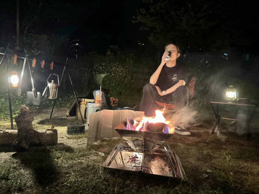 結局、やりたかったはずの火おこしまでも私にやらせて、
