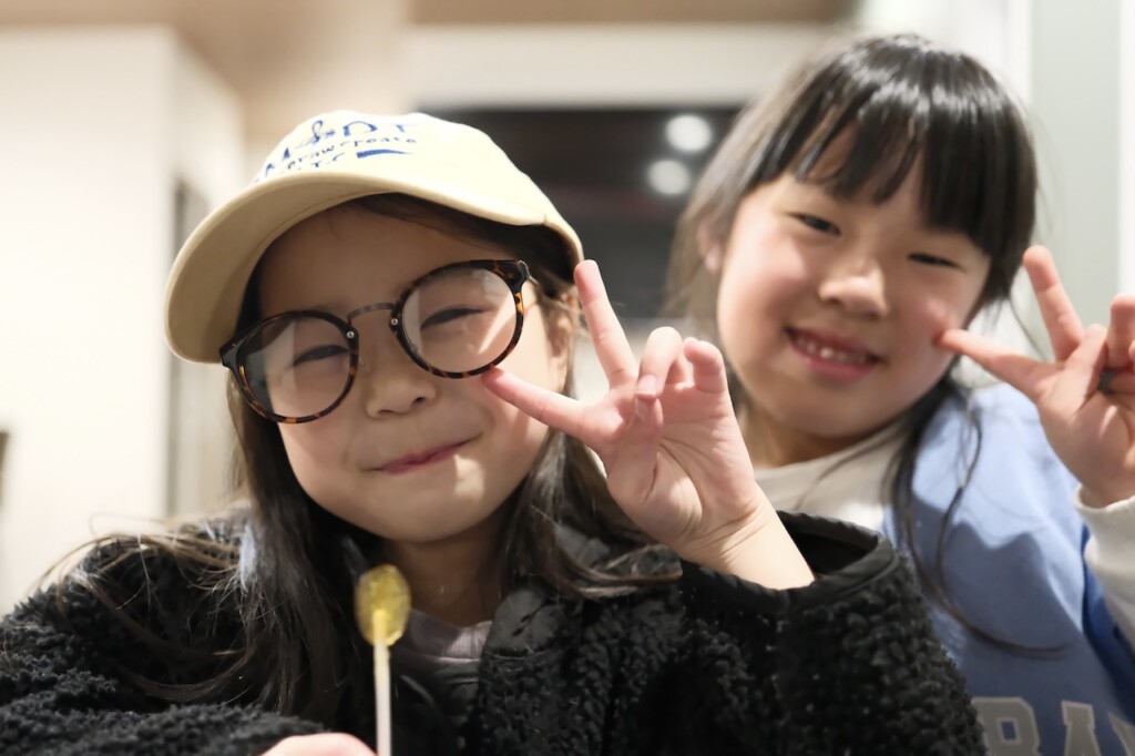 ニヤニヤ装着する、ニコニコキッズたち!