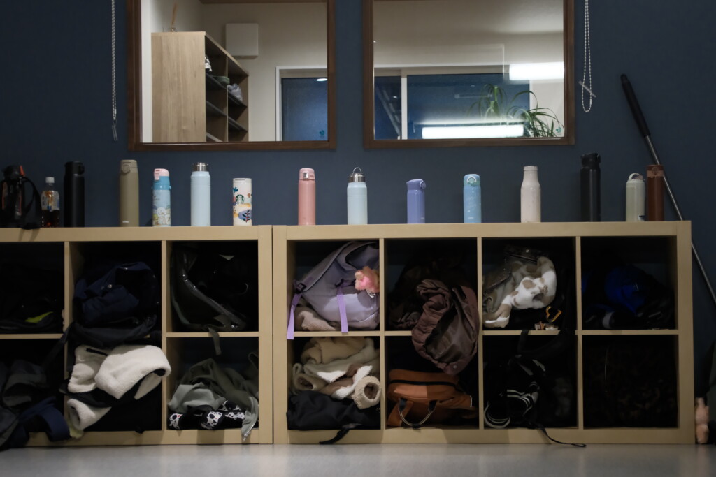 とってもキレイに並ぶ子供達たちの水筒と、
