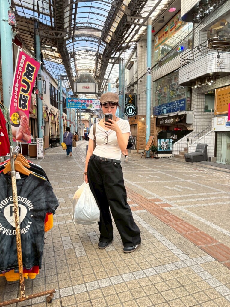 (寄った古着屋全てで何かしら購入し、どんどん荷物が増えていくセナ)